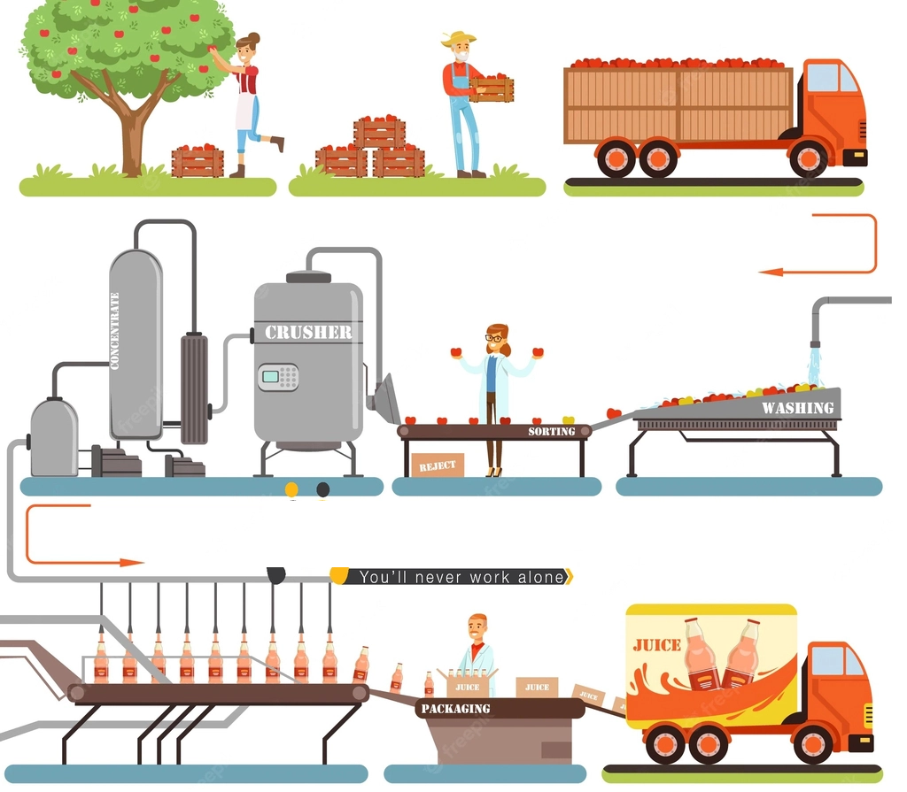 Rửa, gọt, ép và lọc bằng hệ thống khép kín.