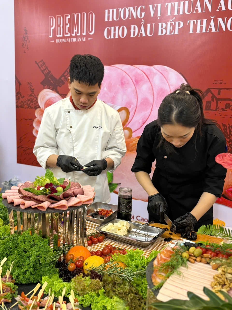 Khách hàng và đối tác trao đổi về giải pháp nguyên liệu bền vững.